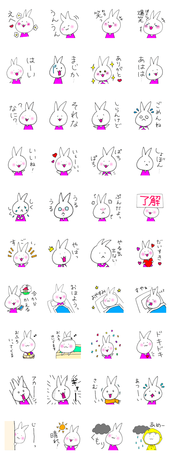 うさこちゃんの、日常で使いやすい、かわいいスタンプです!小学生の頃から温めていた、うさこちゃんを今、世に放つ!!