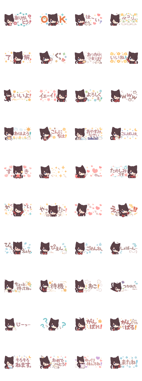 毎日使えるリアクションや挨拶が入った白猫少年の双子、元気な黒猫少年の省スペーススタンプです。