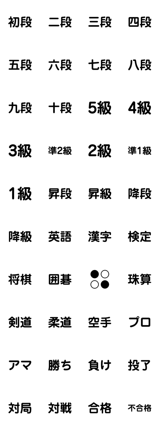 英検・漢検・囲碁・将棋・オセロ・空手・剣道・柔道・珠算などをやってる方に使いやすいスタンプです。