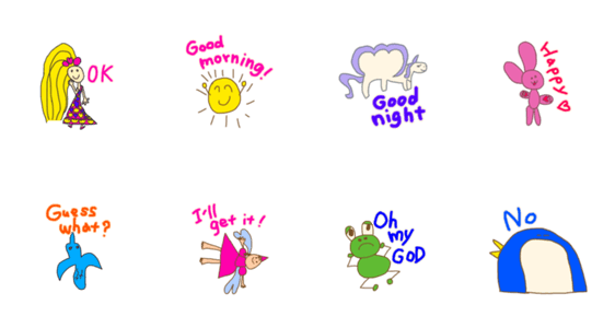 These Stickers are useful for dayly. Doodle-like illustrations and messages are well.Have fun to communicate with your friends on the Stickers!