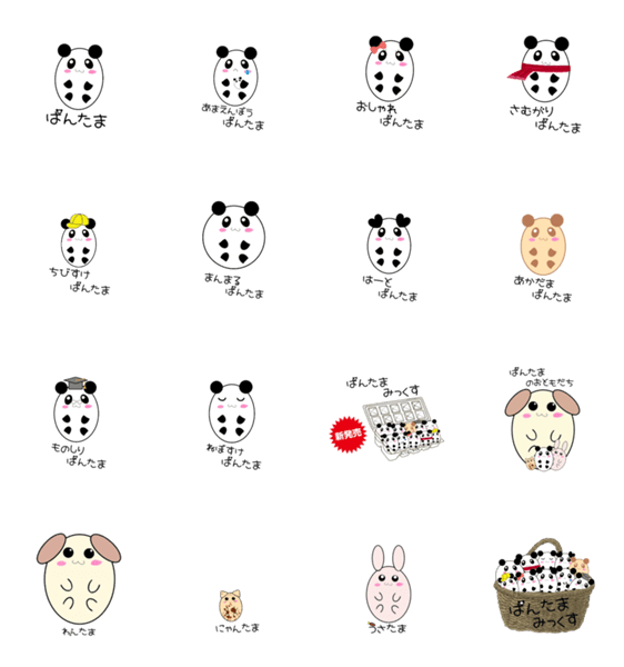 パンダと卵が合体した、ぱんたま!! ぱんたまのお友達もいるよ♡ お名前覚えてね(*^^*) 取扱注意!!割れやすくデリケートなので優しくそっと扱いましょう!!