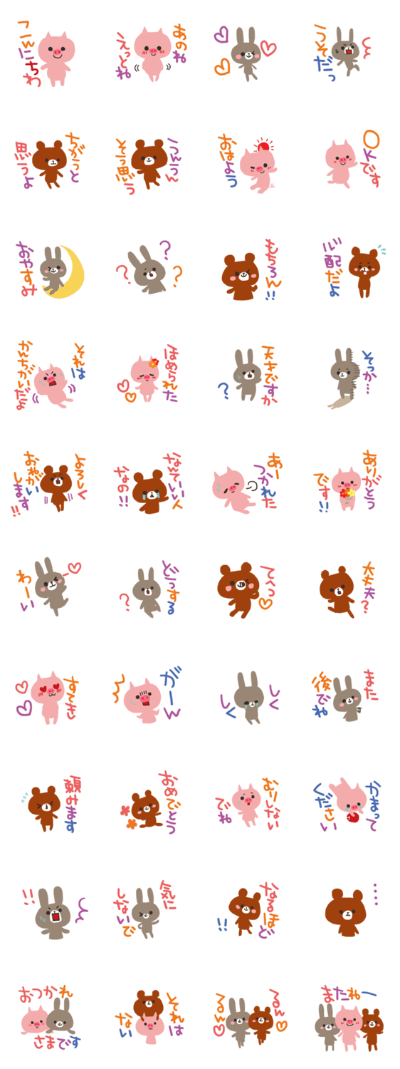仲良しなぶたさんとくまさんとうさぎさんのスタンプです。シンプルで使いやすいスタンプです!