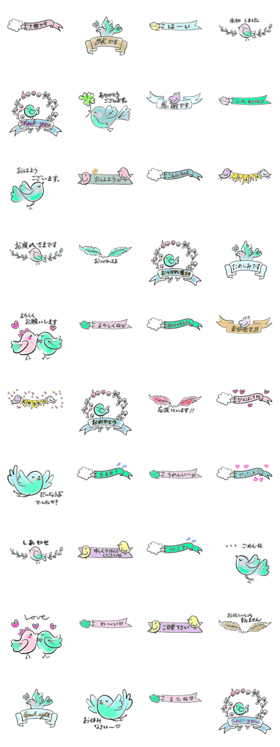 幸せ小鳥の手描き文字♡省スペース -LINEスタンプマニア
