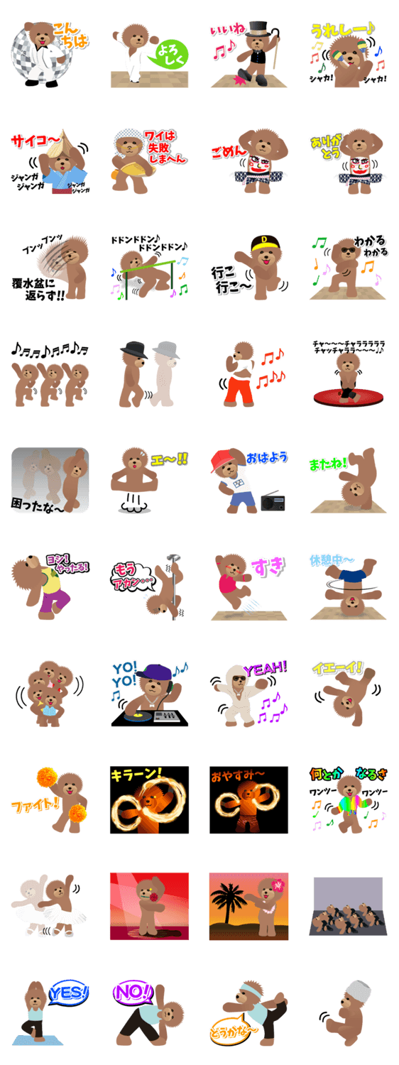 | スタンプ説明 | 言葉にするのは照れくさいから、その想いを踊って伝えてみた。気が付けば30年。シャイな君の代わりに「日常の犬」がきっとダンスで伝えてくれる。トイプードルのような犬。 |