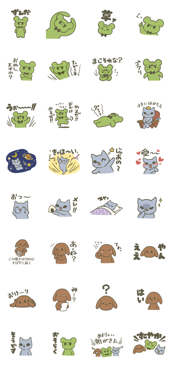 くまのずんだと猫と犬のハニーとベイビーのすこやかなスタンプ