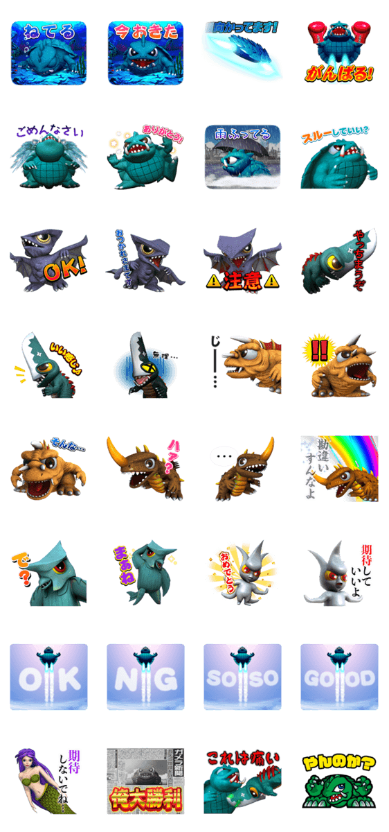 スタンプ説明 小さくてかわいいガメラや怪獣たちのスタンプです