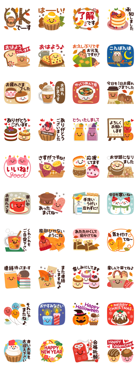 ちょっとだけ大人の、秋から冬にかけて使える便利なスタンプ。季節にぴったりで、毎日使える言葉が色々♪ ハロウィン・クリスマス・年末・お正月・受験・バレンタイン入り