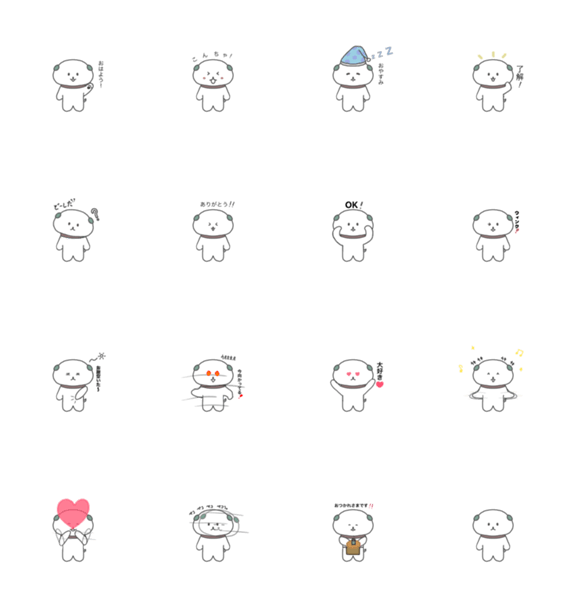 白ネコのあいうえお・・・ってるスタンプ