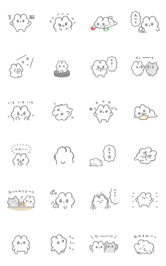 ぴえんなうさぎもぴえんな猫もいる動くスタンプです。毎日使える系です。ロボット掃除機に乗りたい人へ。量産型/地雷系/ウサギ/ゆるかわ/韓国っぽ/うごスタ/oroninet