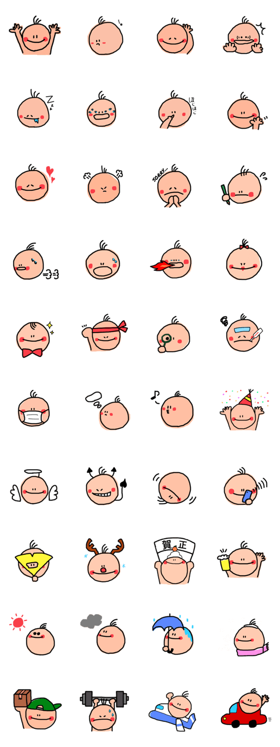 手書き風で、コロッとしたかわいい子のスタンプです。