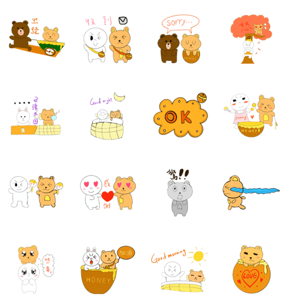 These stickers were made in LINE Sticker Maker. Part of the "Make stickers with BROWN & FRIENDS" collection.