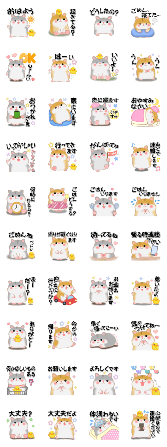 ハムスター「ハムたん」の家族の連絡用スタンプです。 家族、友達、カップルとの日常会話や挨拶・連絡用にお使いください。