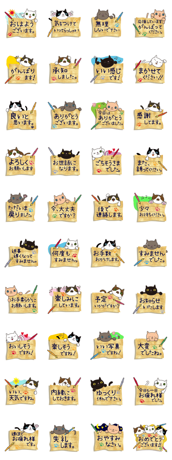 手紙ねこの2作目。先輩、ママ友、ご近所さんなど目上の方にも使いやすい敬語スタンプです。大人かわいい手紙ねこが、敬語で丁寧に伝えてくれる手紙風スタンプです。