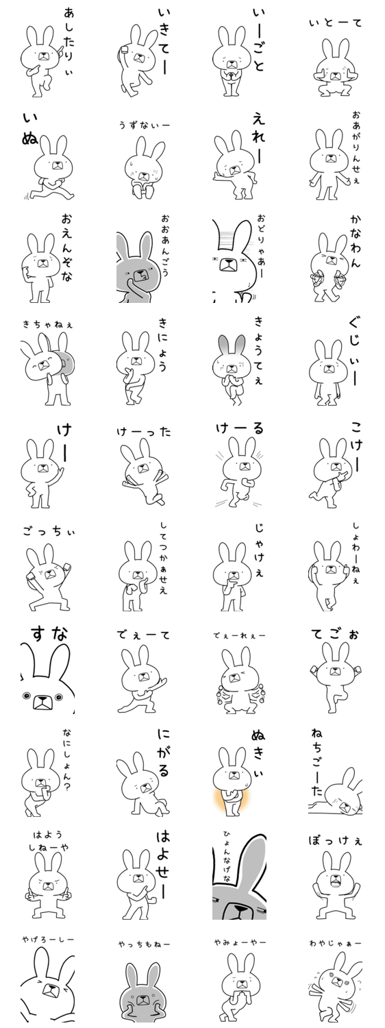 いろんな方言をつかううさぎのスタンプ高梁弁編(岡山、そうでない方も使えるかも。また違う県verに似た方言が見つかるかも) ※このスタンプはトークルームで大きく表示されるBIGスタンプです。