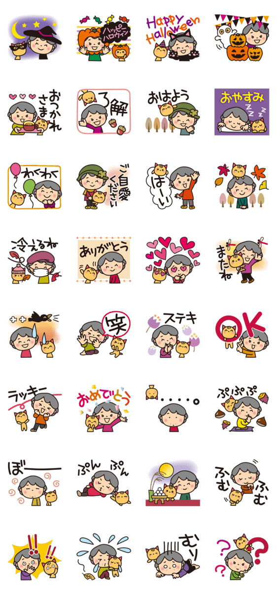 優しくてキュートな「ばぁば」の秋を感じるスタンプです。