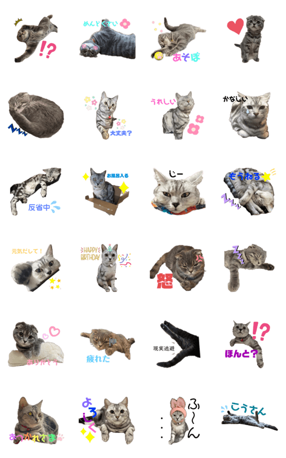 我が家のスコティッシュあんことアメショのゆきち、なみのスタンプ♪