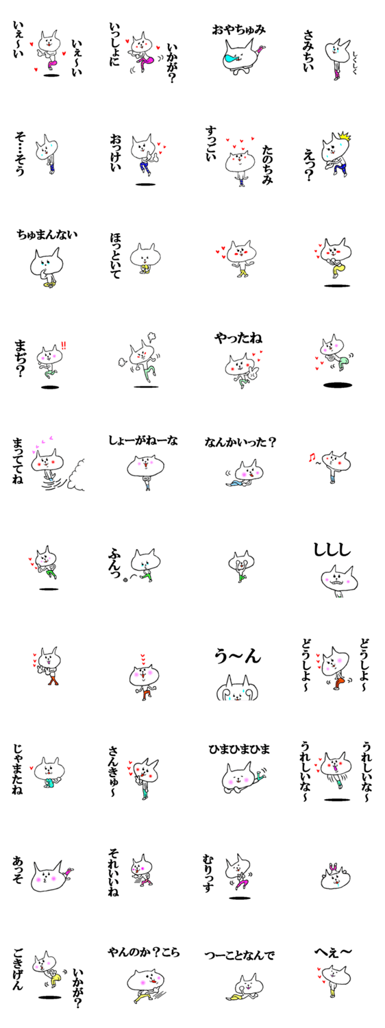 白ネコのあいうえお・・・ってるスタンプ