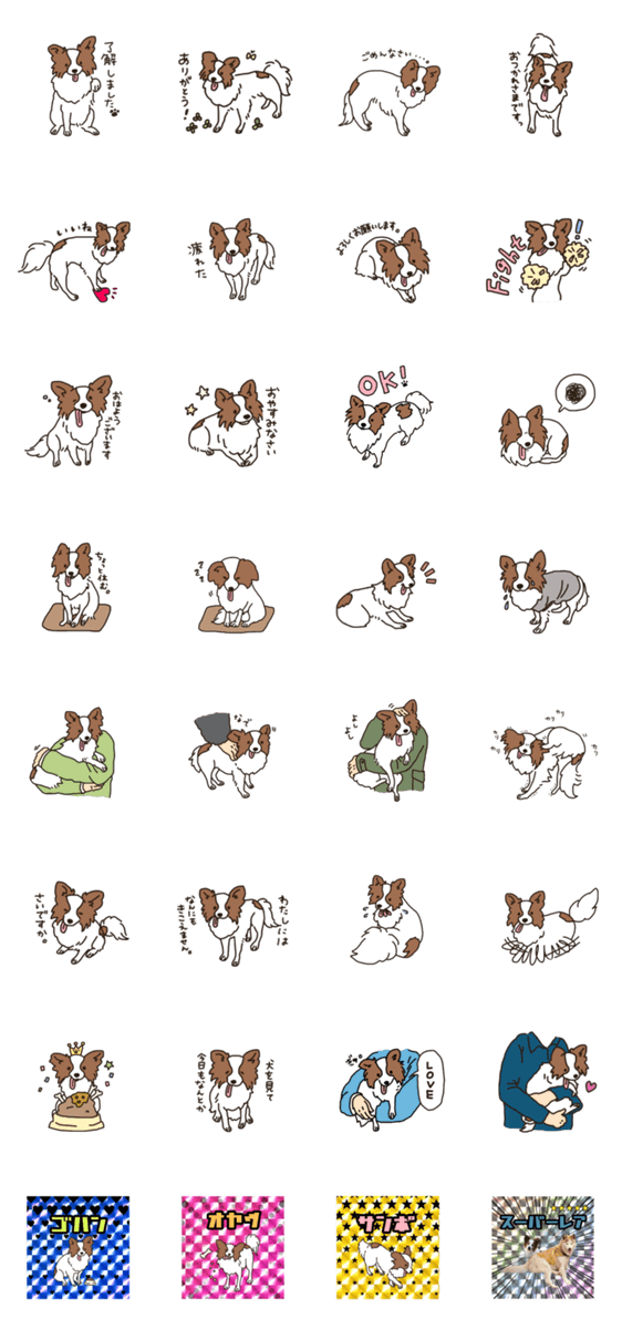 舌が出っぱなしパピヨンひまわりちゃんの日常スタンプ