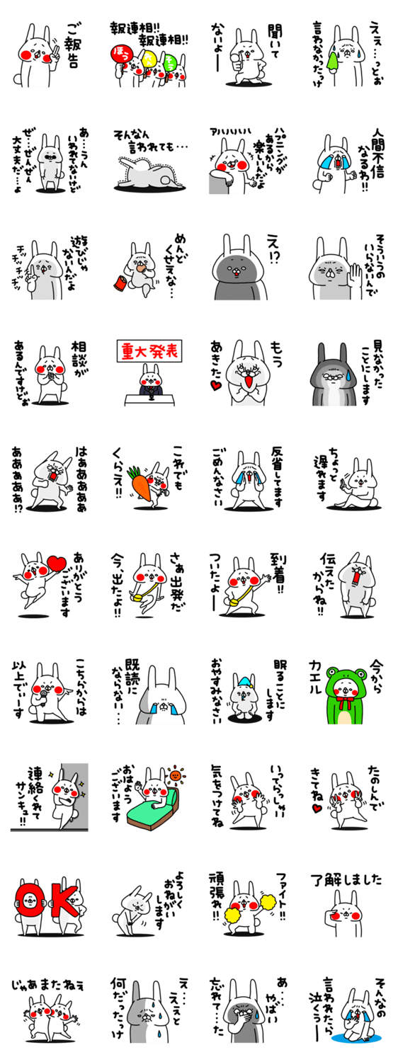 全力でうざい全力でおちょくるあざとかわいいうさぎの業務連絡編。家族や仕事仲間、友達や恋人への報告・連絡・相談はしっかり伝える。そんなホウレンソウのスタンプです。
