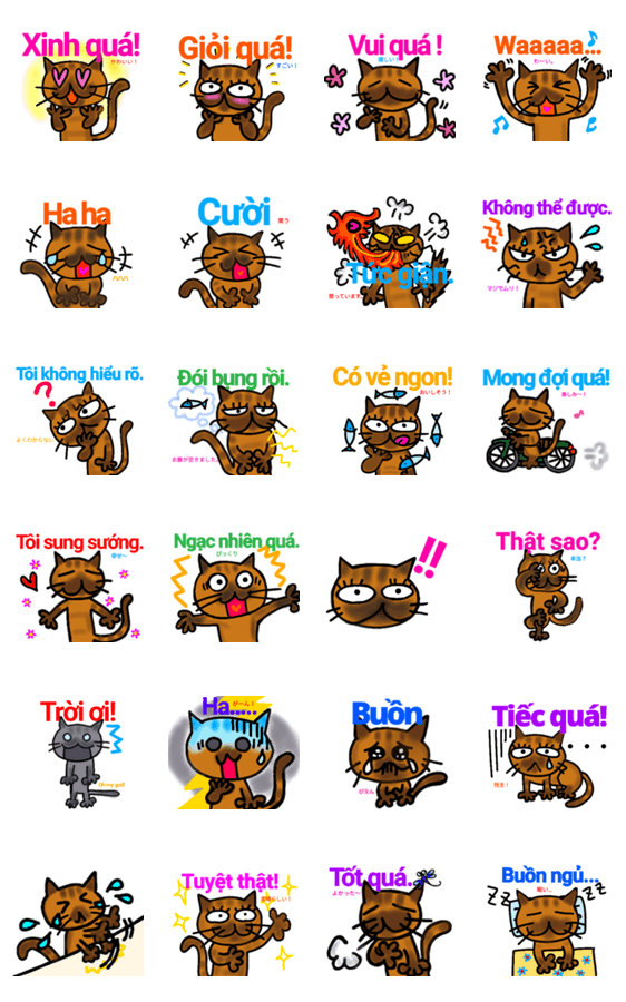 シャム猫のピーくんのベトナム語スタンプ第三弾です!(日本語の訳つき) 感情表現の言葉を集めました。お友達と楽しく使ってください。