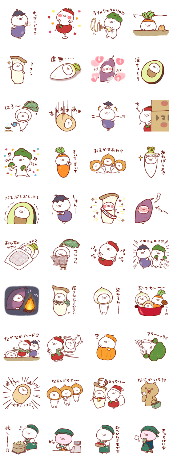 「うさまるマート」の野菜たち、ベジまるズがスタンプになって登場! アニメでも大活躍、個性あふれる愉快なベジまるズでトークを盛り上げよう♪