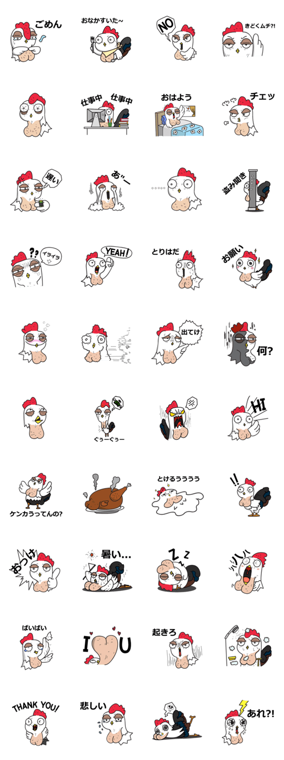 | スタンプ説明 | here is the first of the new issue of fantastic chicken sticker, Katak : the white chicken.Let's use and enjoy it together |