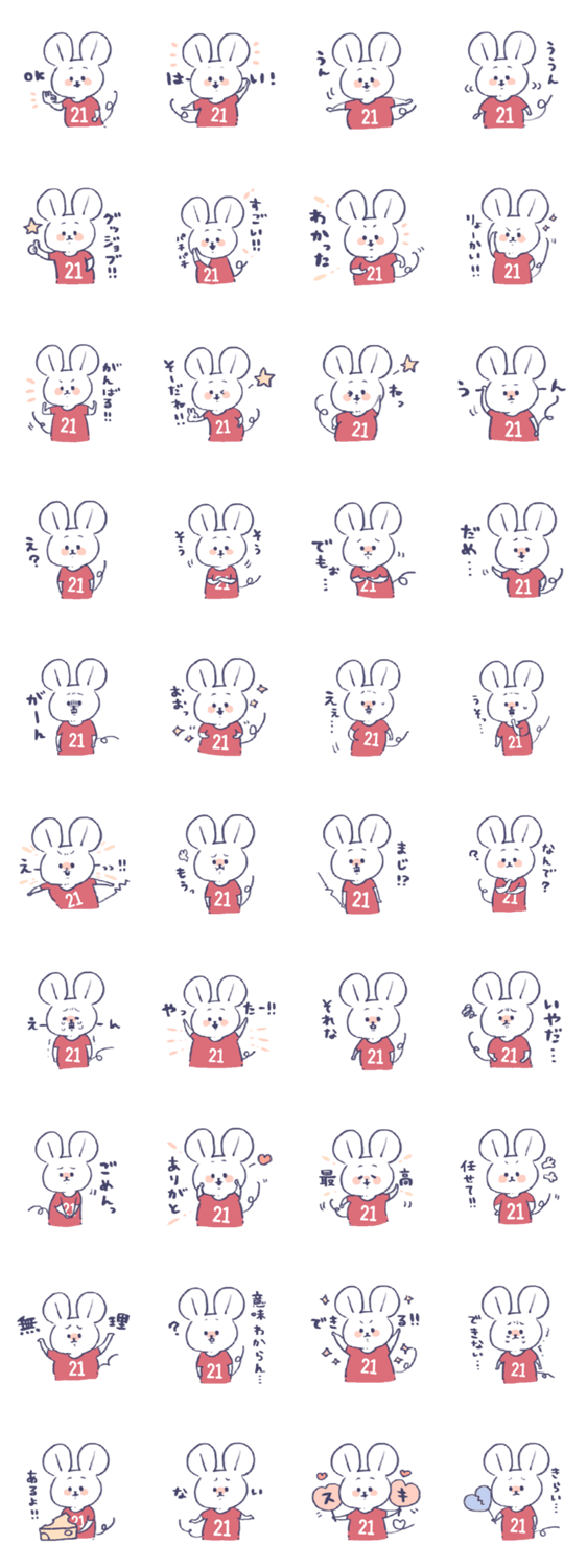 背番号ねずみ #21 赤 -LINEスタンプマニア