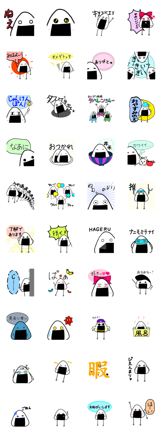 おにぎり丸と仲間たちの楽しいスタンプです!汎用性も高いかも…?