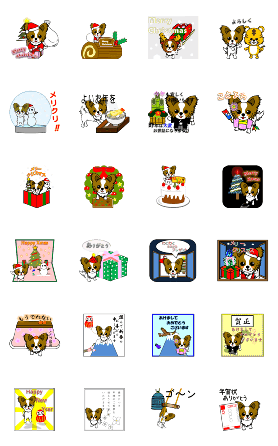 【クリスマス&年末年始】犬のパピヨンが可愛く動くスタンプです。