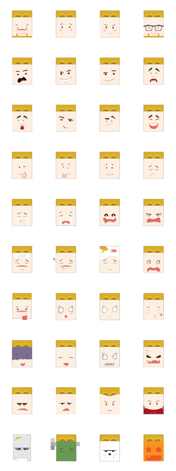 | スタンプ説明 | Mr. Falang is squarish but emotional in many ways, from happy to sad, from loving to angry, for Halloween he is green like Frankenstein or orange like a pumpkin |