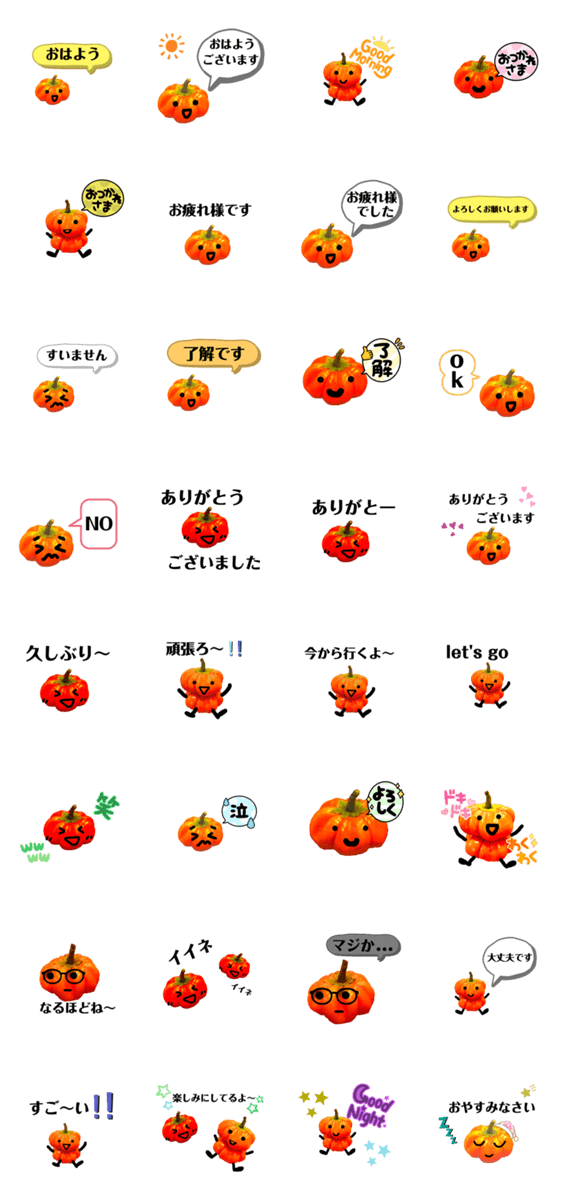 挨拶スタンプ。リアルカボチャ?リアル柿? -LINEスタンプマニア