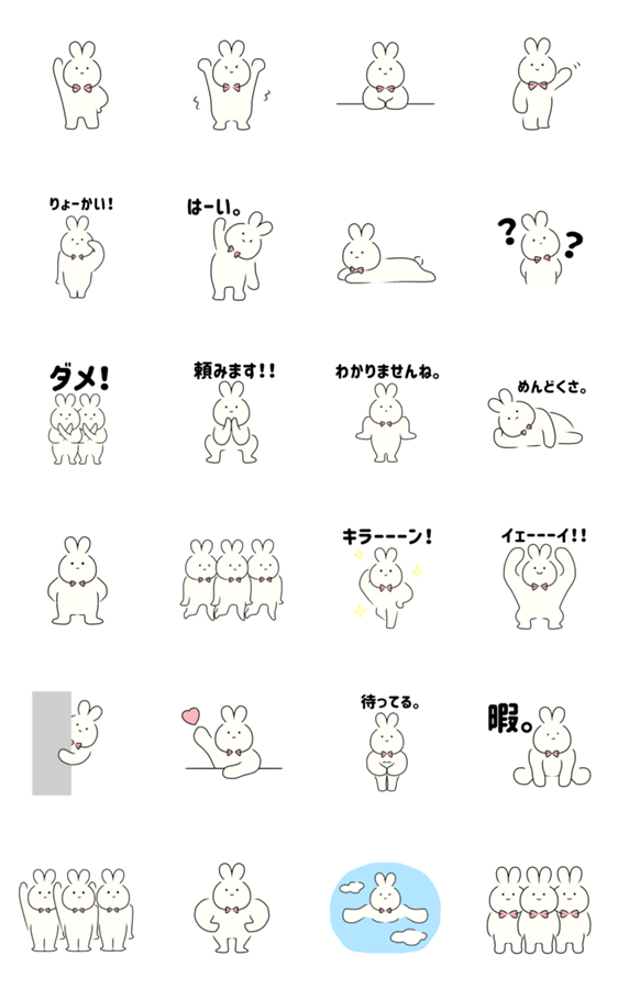シンプルかわいい・ゆるくて、ちょっぴりもちっとした白いうさぎのスタンプです♡日常/毎日使える/シンプル