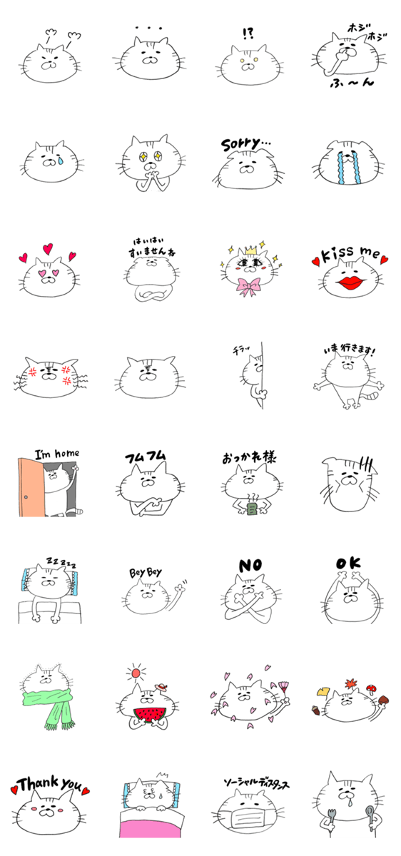 猫か虎かわからない生き物のスタンプです。日常で使えるようなものを集めました