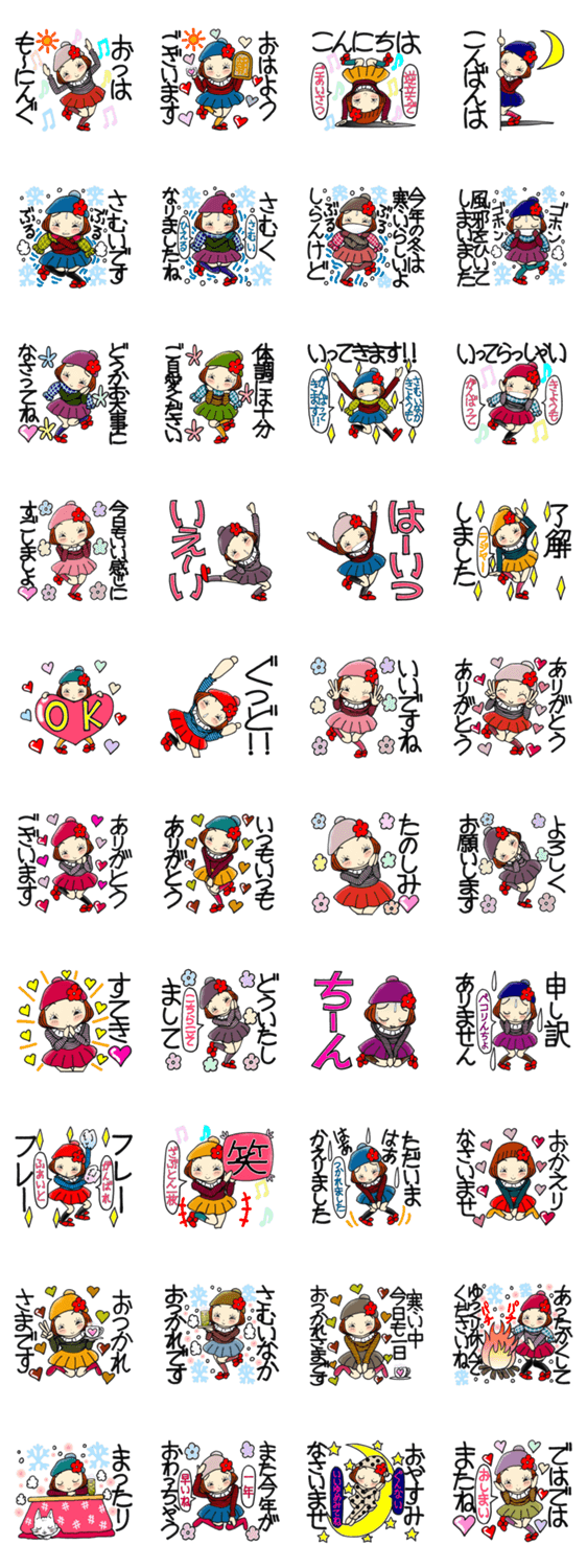 いつも暇をもてあましてるひま子ちゃんの今回は、気楽に使える大人女子の冬の挨拶スタンプです。よろしくお願いします!