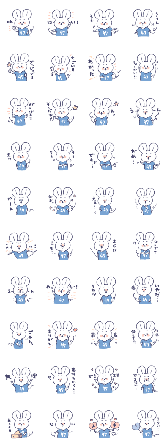 背番号ねずみ #47 青・水色 -LINEスタンプマニア