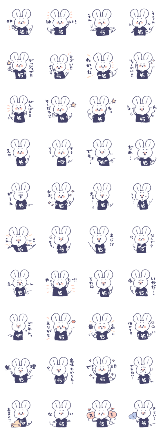 背番号ねずみ #45 黒 -LINEスタンプマニア