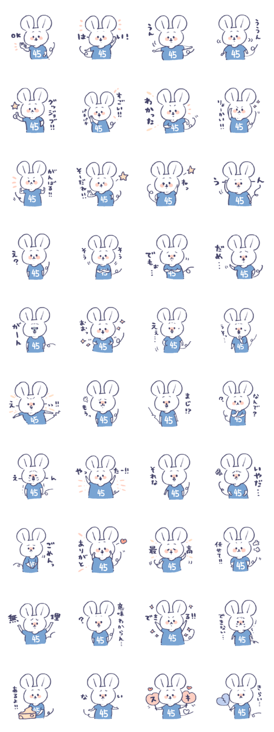 背番号ねずみ #45 青・水色 -LINEスタンプマニア