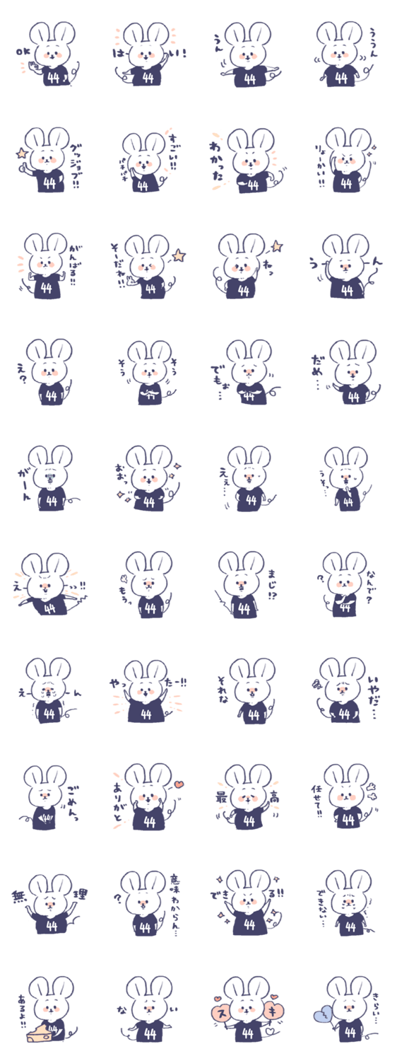 背番号ねずみ #44 黒 -LINEスタンプマニア