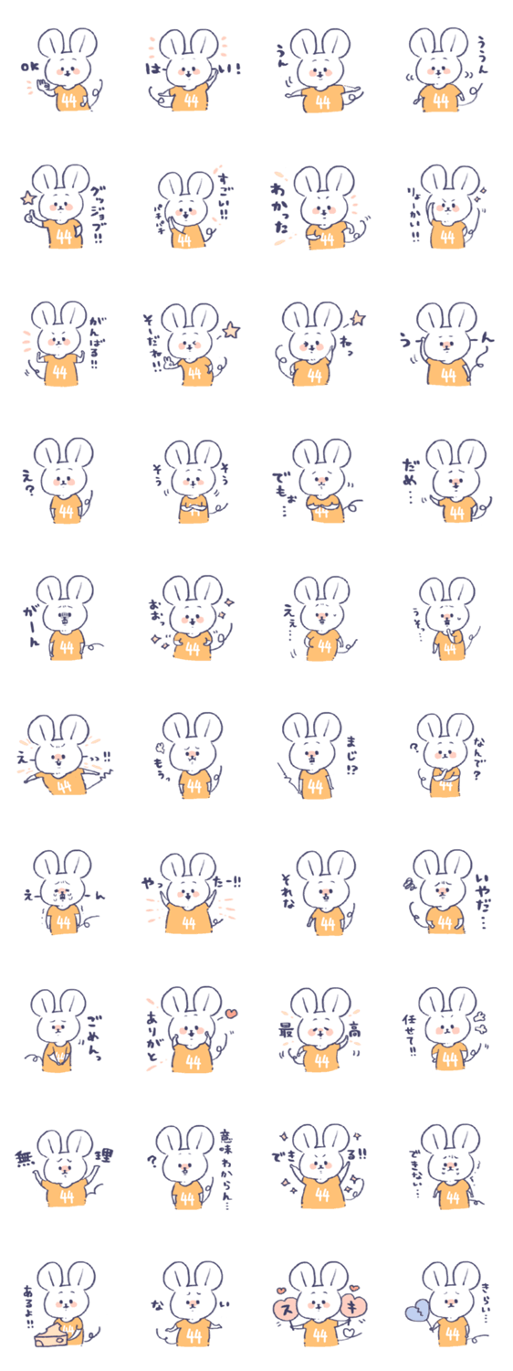 背番号ねずみ #44 黄色 -LINEスタンプマニア