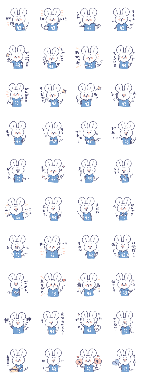 背番号ねずみ #43 青・水色 -LINEスタンプマニア