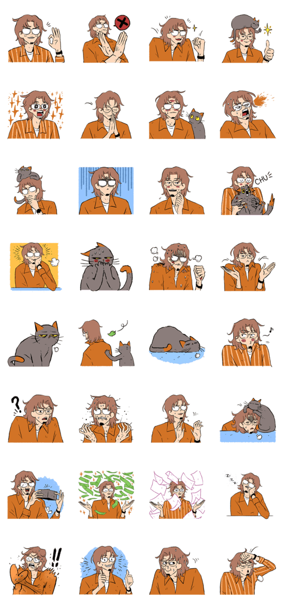Glasses Man Orange Shirt -LINEスタンプマニア