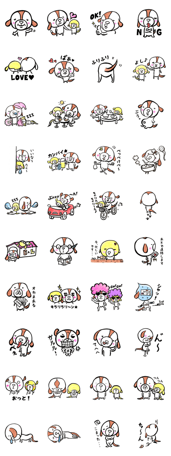仲良しビーグル犬の「ビー&レモン」スタンプ第1弾☆友達、家族、恋人同士、色々な方に使っていただけると嬉しいです(^^)