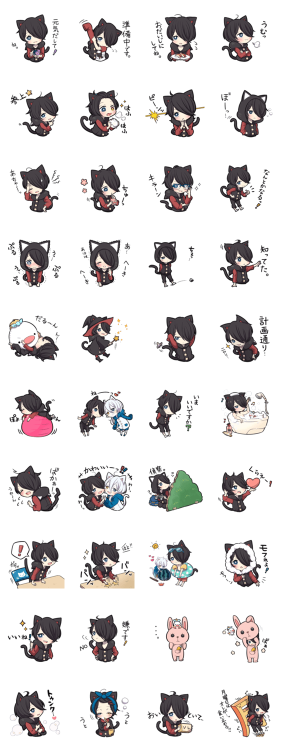 日常会話やリアクションが入った、元気な黒猫少年のスタンプ第五弾です1~4、また『白猫少年』と合わせて使っても効果的です。もちろん単独でも使って頂けます。