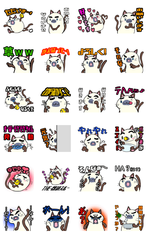青ヒゲが生えた猫 ヒゲミツのスタンプです。品種はシャム猫です。多分 その2
