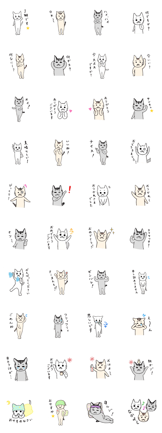 先輩にはカシコニャンコ、お友達には標準ニャンコ、悪友にはチョイ悪ニャンコ…と TPOに合わせて使えます。3ニャンとも大活躍すること間違いなし!!
