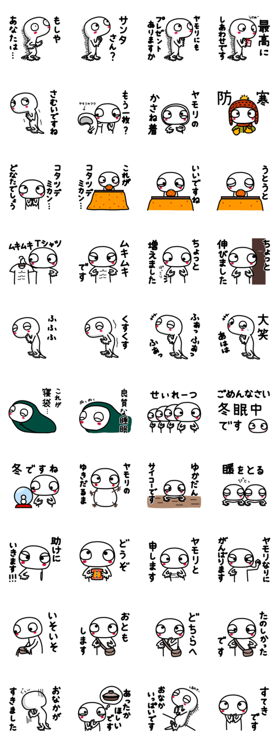 ヤモリのスタンプ冬バージョンです。サンタさんにも会えたようです。