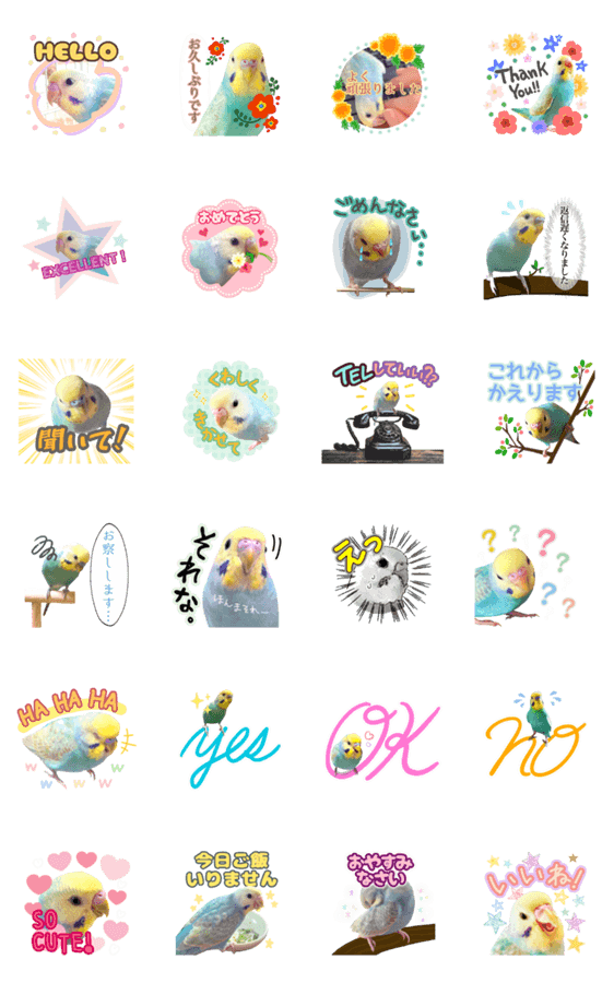 スタンプ セキセイインコ 実写 インコ 空色 小鳥 かわいい