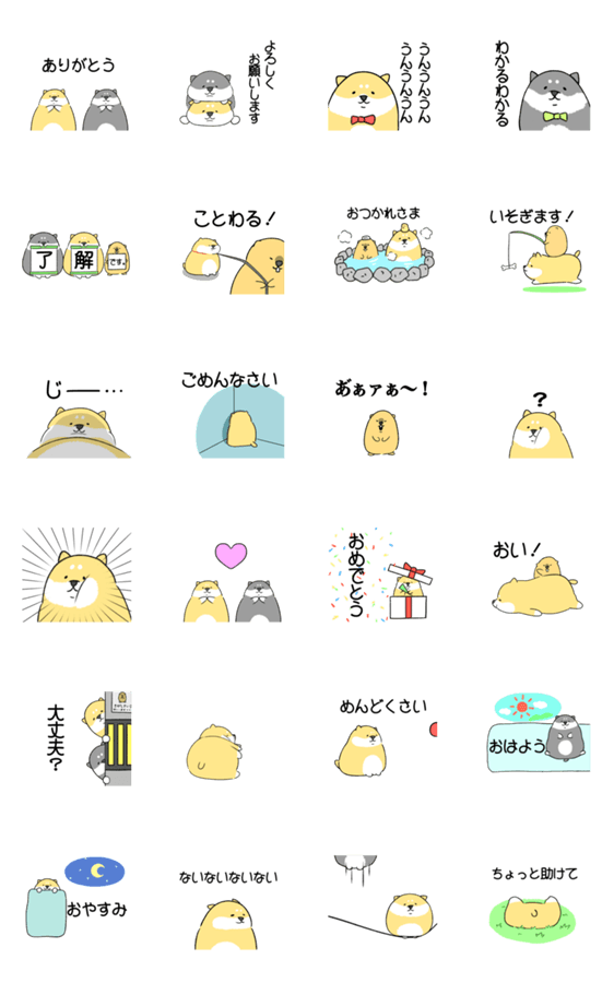 たまごのような柴犬とマーモットのスタンプです。