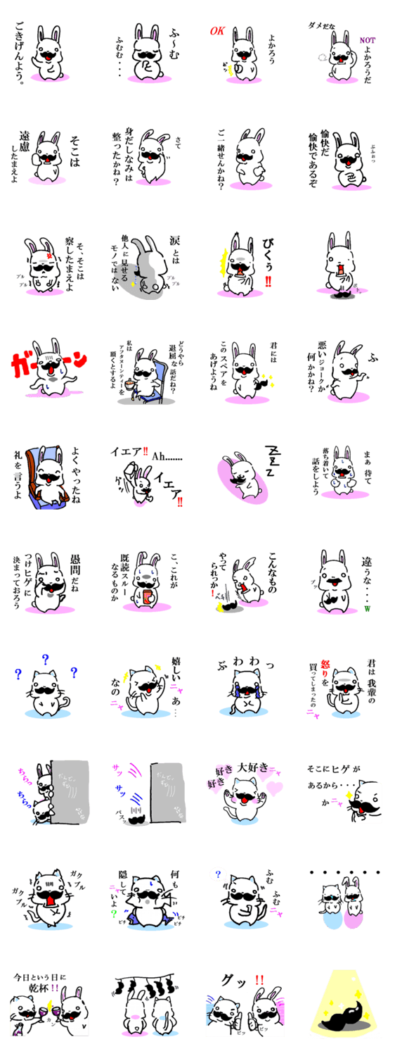 け~ぶらの付けヒゲをしたウサギとネコ -LINEスタンプマニア