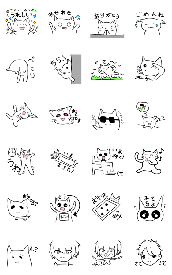 白ネコのあいうえお・・・ってるスタンプ
